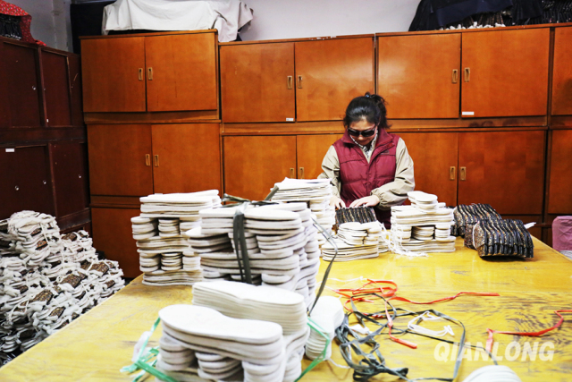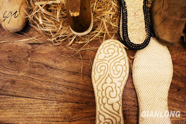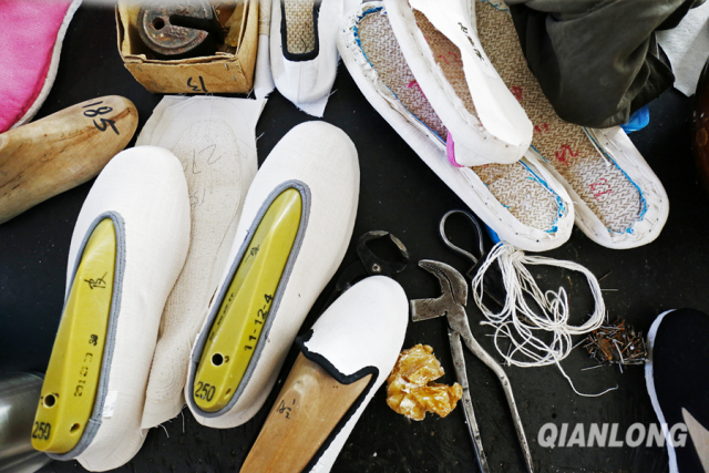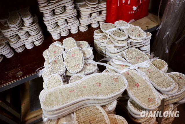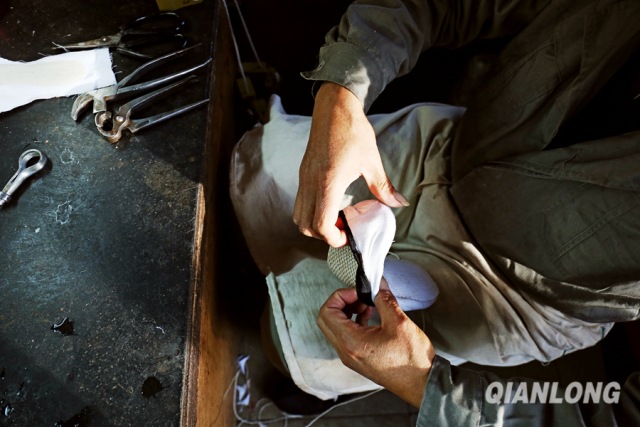 制作鞋底需要30多道工序,每平方寸要纳八十一针。
