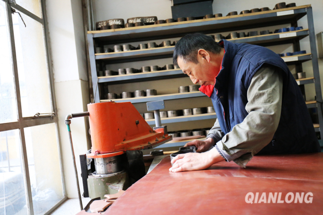 压皮底的李师傅,20岁进厂工作,如今已经是工龄三十多年的老员工了。
