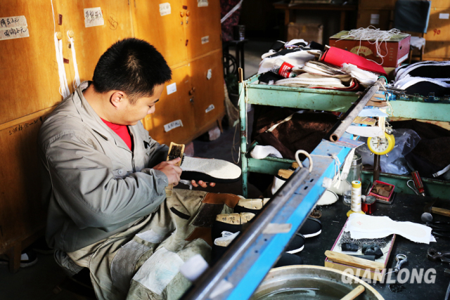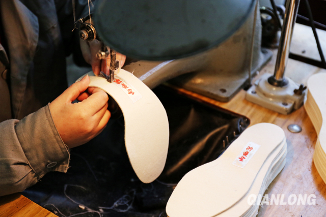 鞋底上的内联升商标也是工作人挨个缝制的。