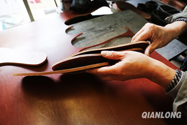除了传统千层底之外,内联升还有牛皮制的皮底。
