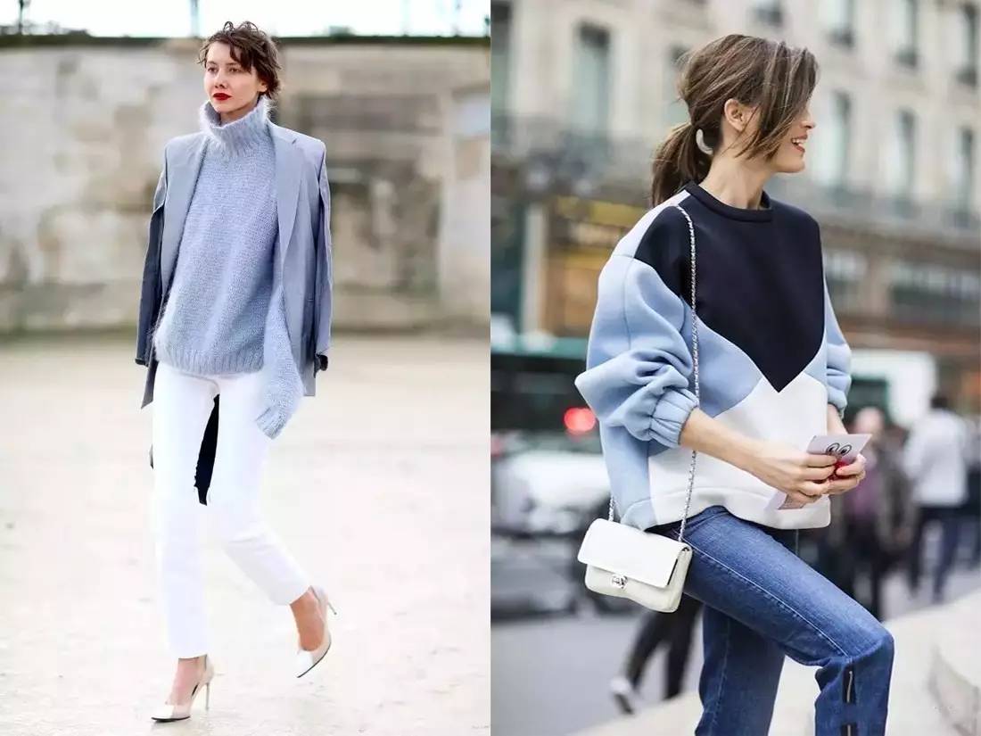 如果你的最大需求是显白,那么灰蓝色系再适合你不过了,不管是浅蓝还是深蓝,显白效果都是五颗星:
