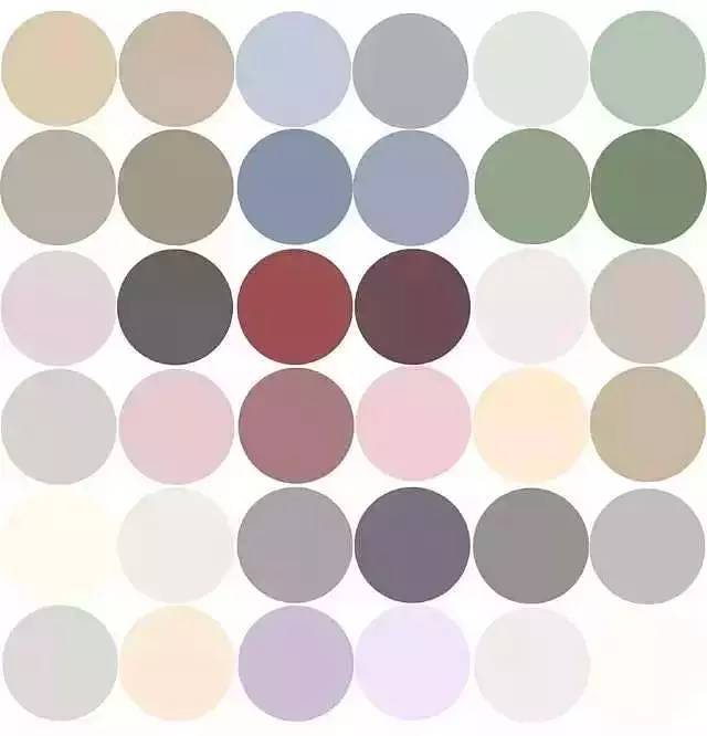 现在呢,莫兰迪色广义上就是指这种饱和度不高,带着些灰度,看起来毫不突兀的颜色——高级灰。