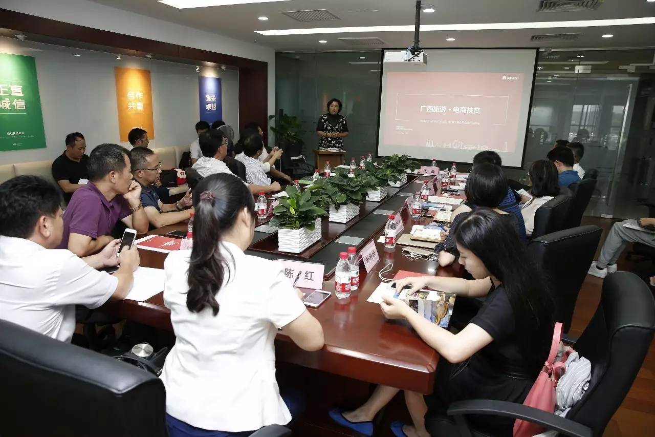 为推进广西乡村旅游电商发展,促进广西旅游业与美团点评集团携手助推脱贫攻坚,拓展广西乡村旅游与全国知名电商合作空间,推动“党旗领航·电商扶贫”活动在广西广泛、深入开展,9月2日下午,广西壮族自治区旅游发展委员会甘霖主任率队莅临北京美团点评集团考察交流旅游电商精准扶贫计划,就双方合作事宜进行洽谈。
