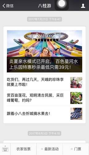 搜索“八桂游”微信公众号,了解“党旗领航·电商扶贫-农家饭票”旅游产品