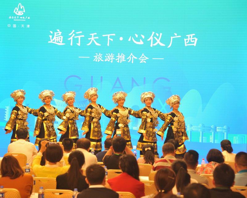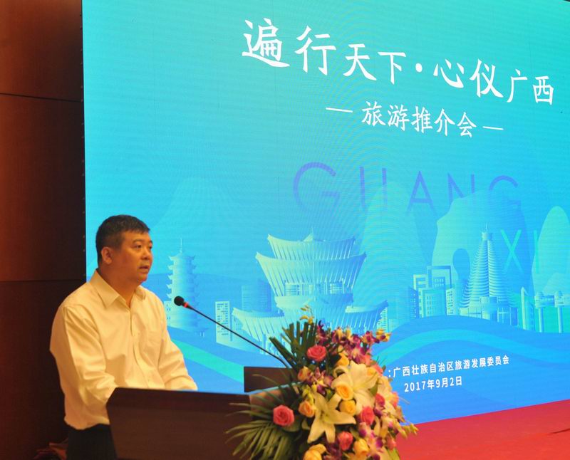 9月2日,“遍行天下•心仪广西”旅游推介会在天津举行。广西壮族自治区旅游发展委员会主任甘霖向天津旅游界和新闻界的朋友介绍广西丰富多彩的旅游资源,天津市旅游局局长吴世昊出席并致辞。