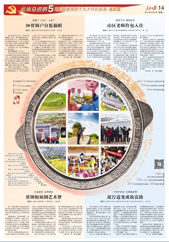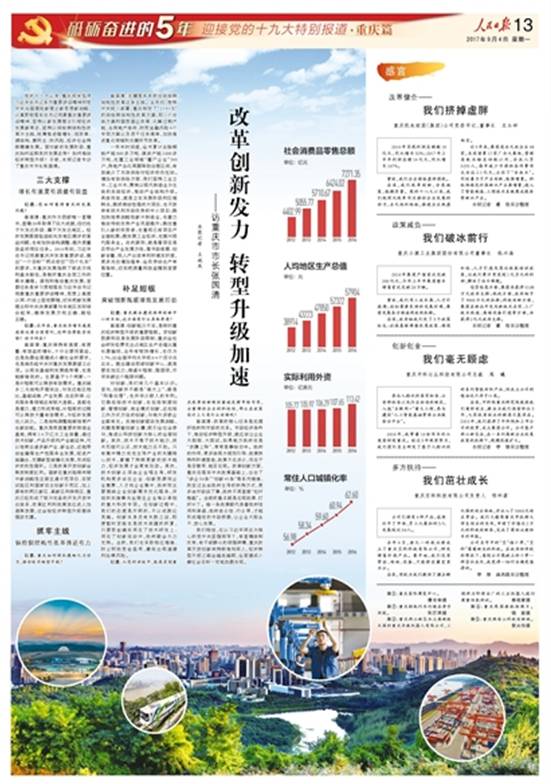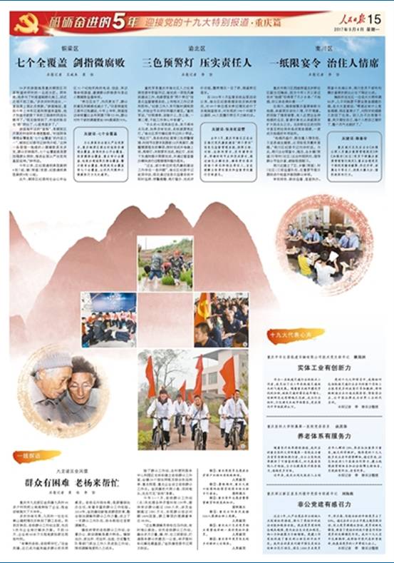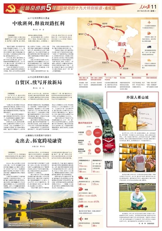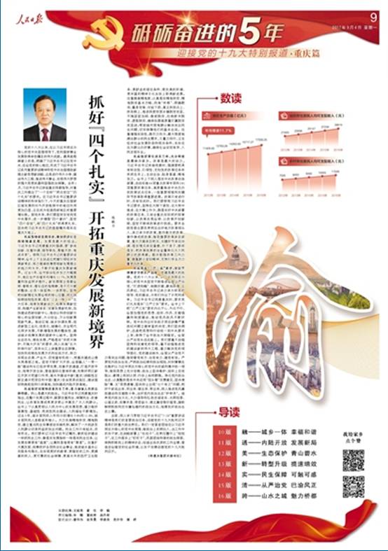 2017年9月4日,《人民日报》在迎接党的十九大特别报道推出重庆专刊,8个整版报道重庆,多角度展现重庆的发展,引起社会各界广泛关注,今天,江小妹给您梳理了部分报道,一起去看看吧。