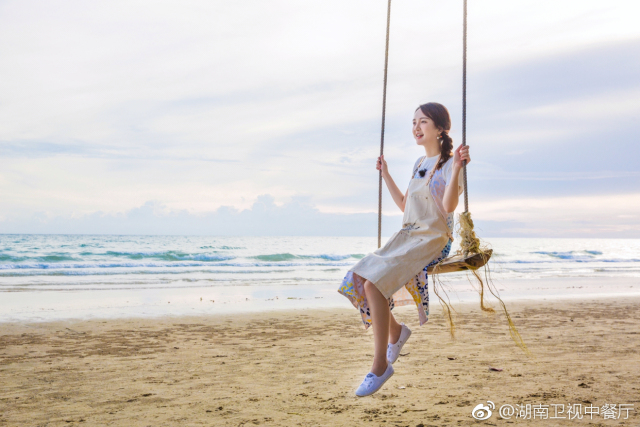 周冬雨在海风里荡来荡去,少女感十足,看起来极其惬意。