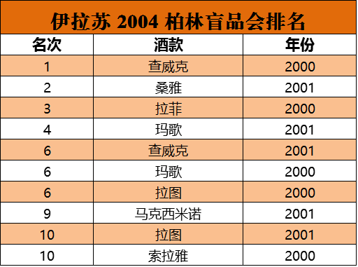 3、查威克:柏林盲品会冠军酒款,伊拉苏家族 19 次盲品会,13 次超越拉菲