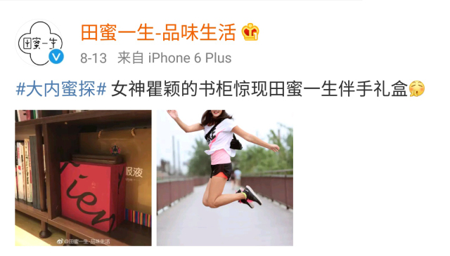 女神瞿颖的书柜也有田蜜一生的礼盒。