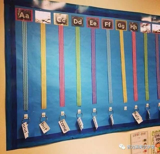 文字墙可以按照字母A-Z分类,那怎么来建立起这面墙呢?可以按照下面的方法:用不同颜色的纸来表示每一个字母,遇到任何以那个字母开头的词语,例如and 和all,就放到a下面。