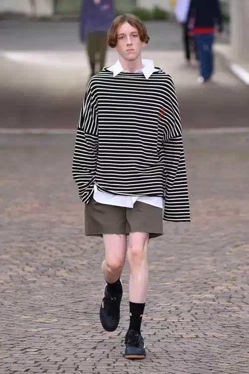 Oversize的设计风格,在2017年大火,里面套穿衬衫,在视觉上给人层搭的感觉。使得一个运动品牌一下变得时尚感爆棚。