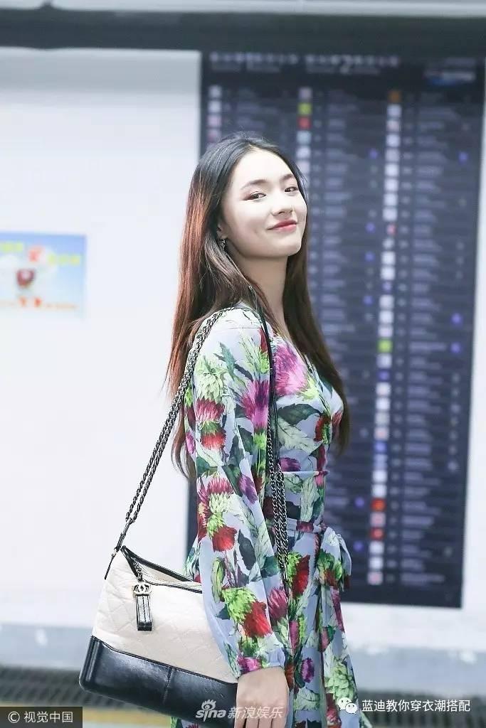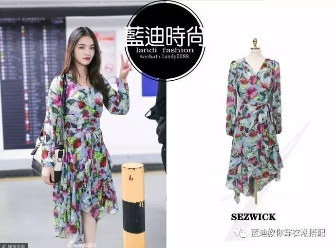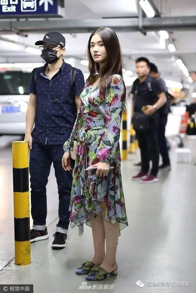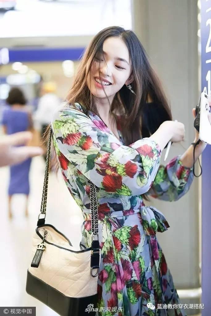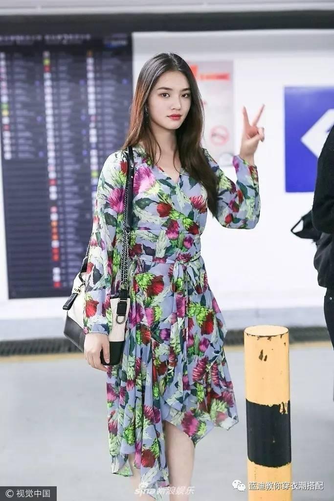 9月1日,林允@林允Jelly 现身上海机场。身穿SEZWICK的蓝色大花裙,花仙子上身,对着镜头比V撩发,元气满满。#女明星私服#(图源:新浪娱乐)