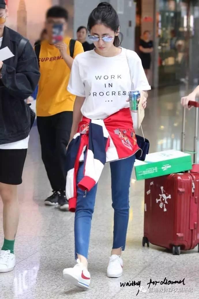 170902 @E_ 成都️-广州 机场私服外套:MASHAMA x LOFi @MASHAMA中国 T恤: @CarharttWIP 包包:@31philliplim 墨镜:@MiuMiu鞋子:@NIKE CORTEZ (图:@WaitingForDiamond_张碧晨个站 ) 、