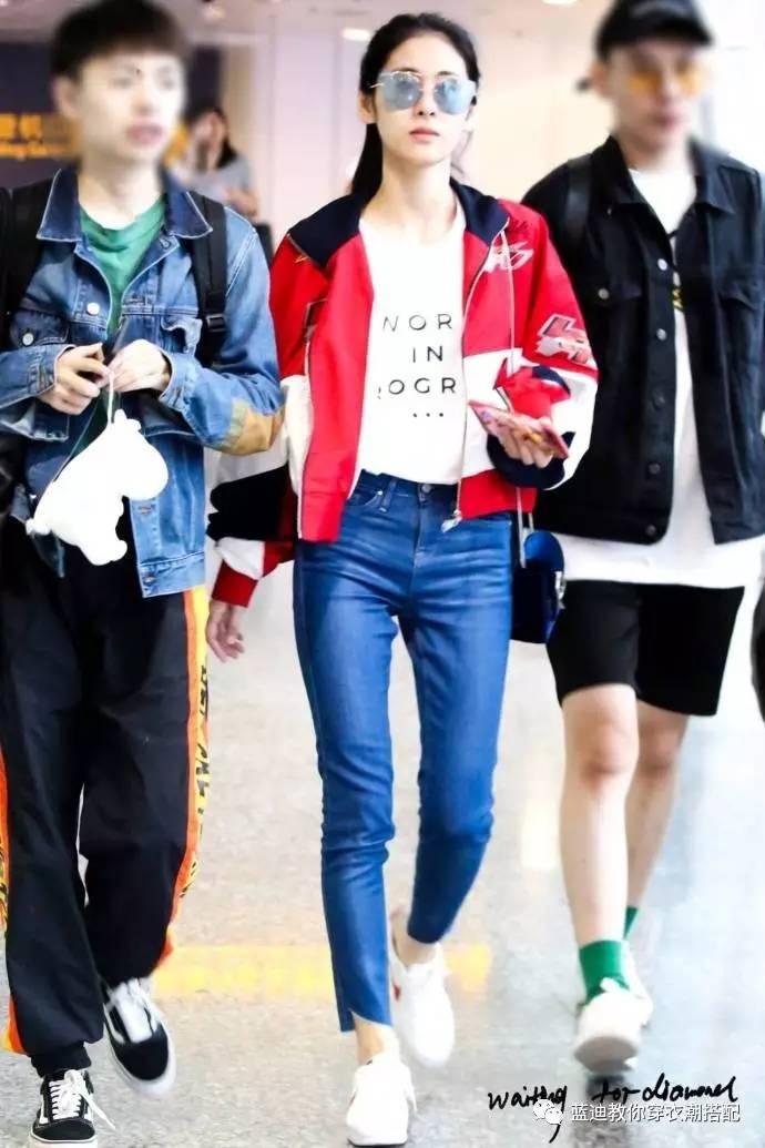 170901 @嘉桦ella 上海机场私服夹克:VERSUS "ZAYN X VERSUS"双肩包: @ALEXANDERWANG #陈嘉桦# (图源:@JunoTieN )