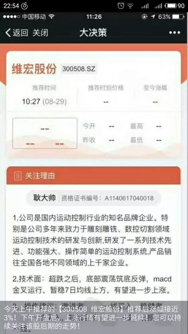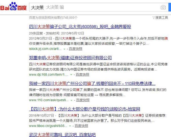 到这里,可以基本确定,大决策就是一家打着投资顾问旗号,实际上在全国各地开设分公司做荐股的网络诈骗公司,此前澎湃新闻一篇《 揭秘微信荐股骗局:美女荐股师连推牛股,收上万会费再无神通 》对此做过相关披露。