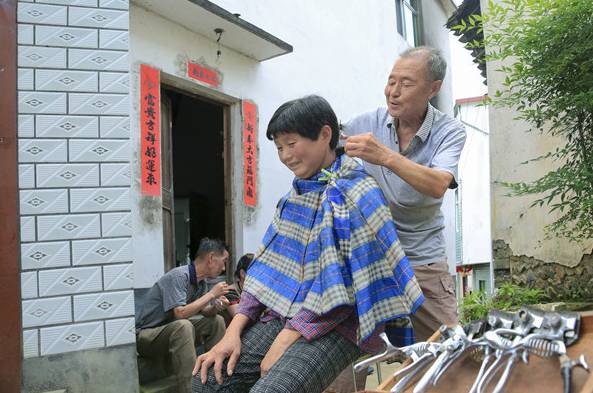 义务为村民理发50载、用行动践行“雷锋”精神的歙县金川乡仁合村古稀老人吴兆燧。
