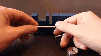 原来一粒磁石被藏在受震击一端的内部。