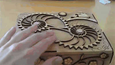 箱子表面有两枚无法转动的鹦鹉螺齿轮,