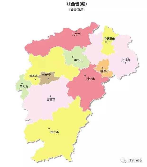 辖11个设区市、100个县(市、区)。其中11个设区市分别是:南昌、九江、赣州、新余、吉安、宜春、萍乡、上饶、景德镇、抚州、鹰潭。