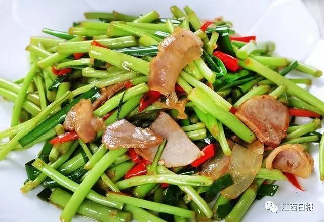藜蒿炒腊肉是一道著名的江西汉族名菜,属于赣菜系列。