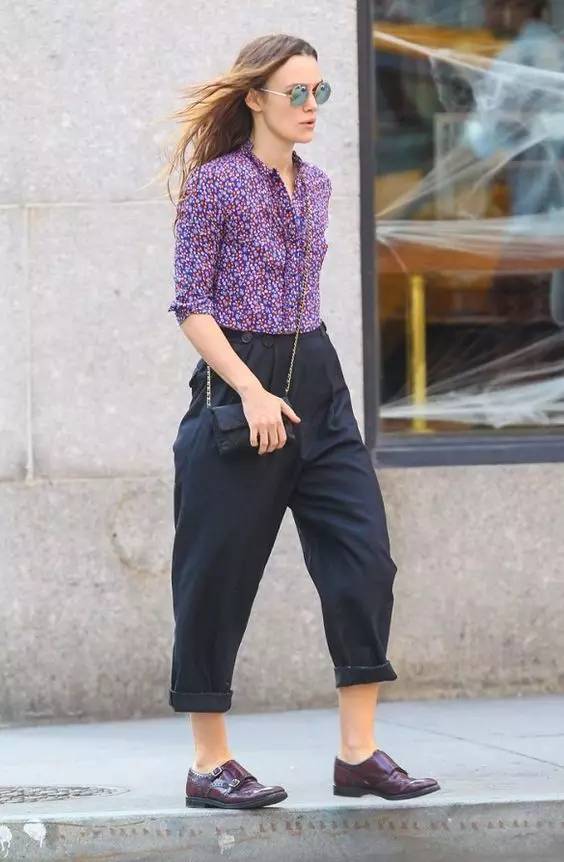 苹果型身材在选择阔腿时谨记“短一截”就可以了。一定要露出一截小腿,更显高显瘦,肥大的裤子完全遮住腿部会从腰腹开始连成一个大水桶的感觉
