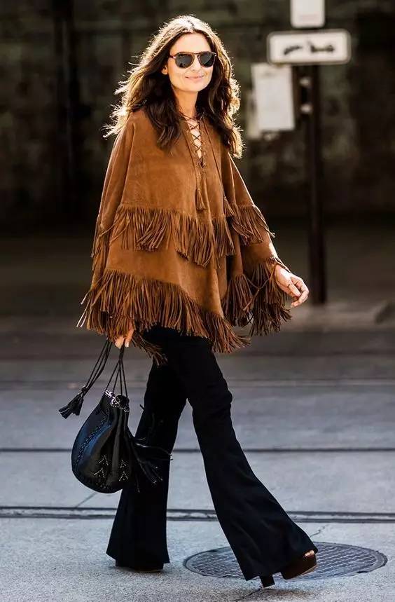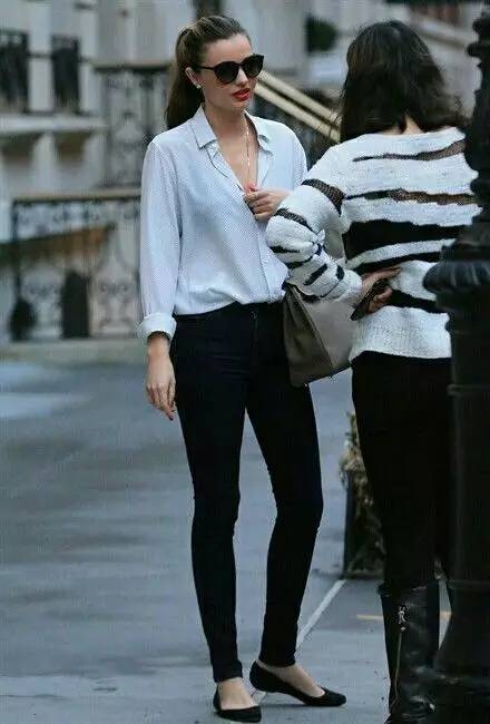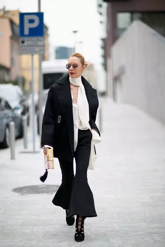 穿法上一般以遮住鞋子2/3为最佳,是最能显高并且修饰腿型的裤子,在喇叭裤里踩一双高跟鞋已经成了标配。小个子也能驾驭得很出色。