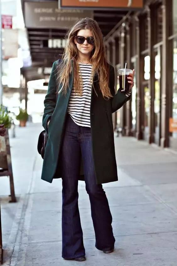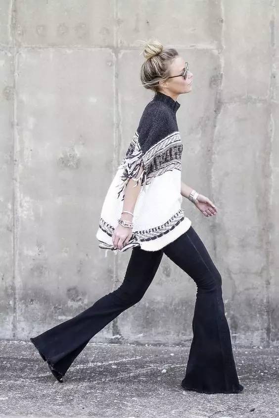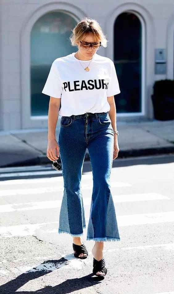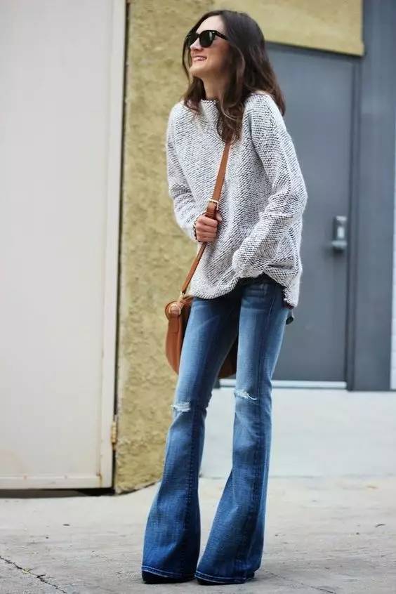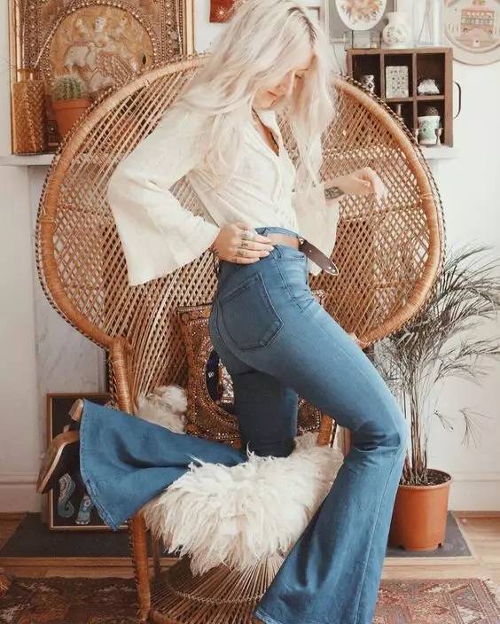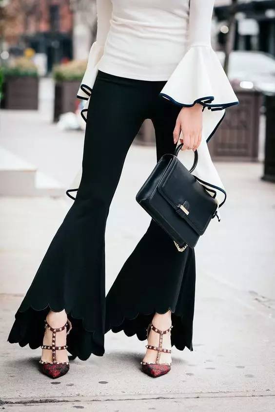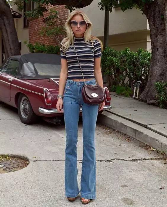 喇叭裤是这两年回潮的复古单品。在臀部和大腿位置是合身的到膝盖开始逐渐宽大。这种裤型可以很好的展现女性的曲线,显高显苗条,属于能够塑造风格的单品。