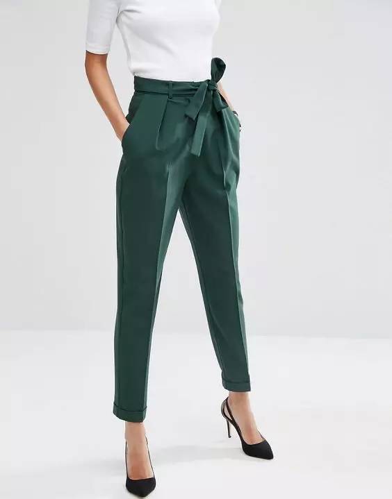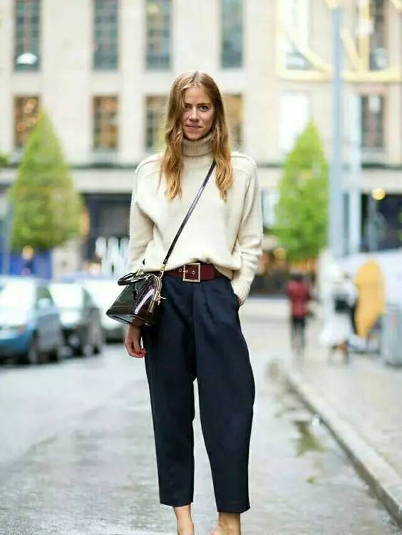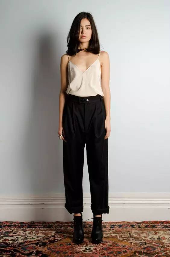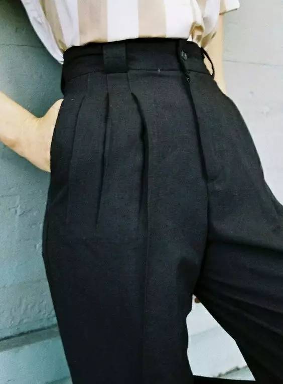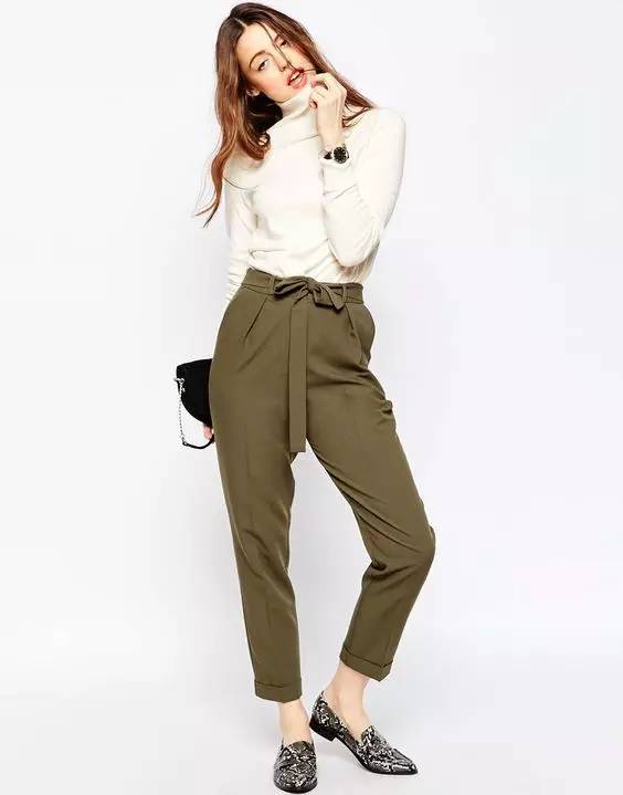想要有女人味一些可以尝试高腰锥形裤,打造臀部腰部的曲线。