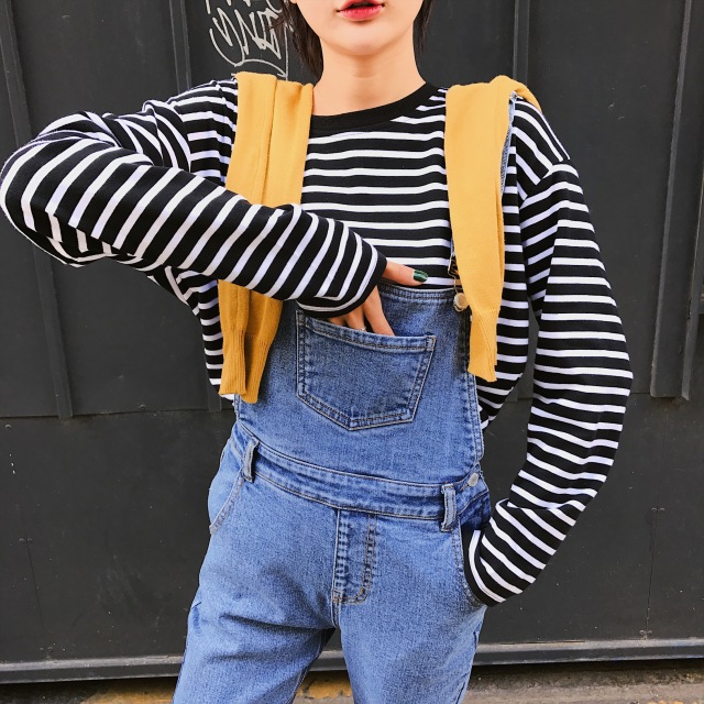 条纹款式也是比较推荐的,在视线上能有很好的延伸效果。