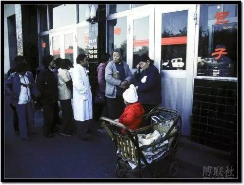 87年北京一家国营食品店门前,那个时候分时段供应,小竹车是亮点