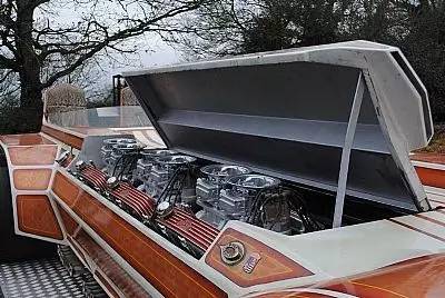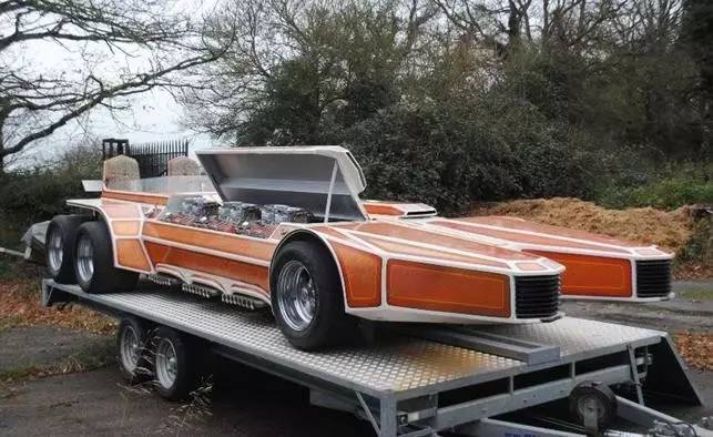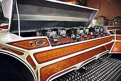 你是不是觉得一副底盘最多只能塞四台引擎呢?那你可就幼稚了。在20世纪70年代早期,传奇的George Barris着眼于打破一些速度记录,六引擎的“蛇洞”应运而生。这台六轮赛车加装了六台福特眼镜蛇的V8引擎,匹配以两台自动变速箱,大概可以输出2000多马力。但是这车到目前为止从来还未挑战过任何记录,所以它的极速还是个未知数。