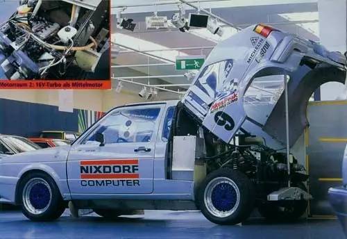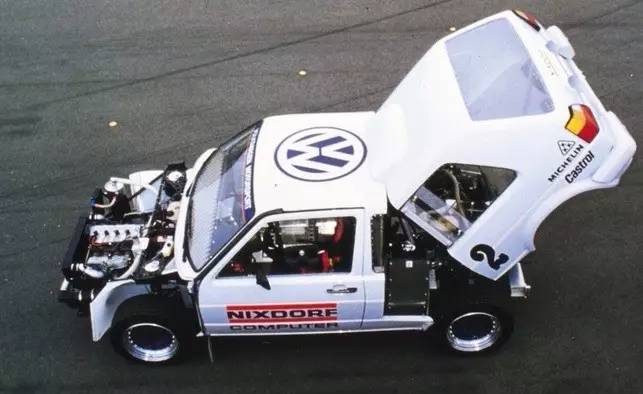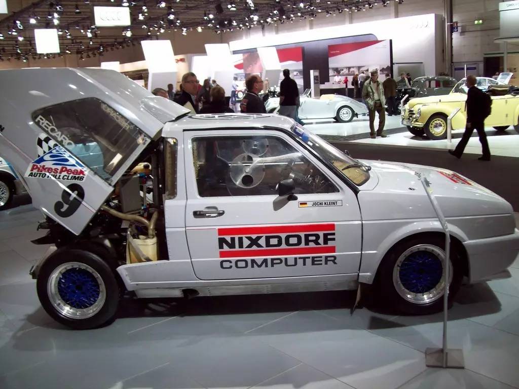 派克峰爬山赛创办多年来见证了许多稀奇古怪的机器,但是最奇怪的还数这台双发动机的高尔夫MK2,大众一开始为其安装了两部250马力的1.3升的Polo用引擎,第二年则升级为总功率652马力的两部1.8升发动机,尽管车重1.05吨,但百公里加速只需要3.4秒。然而遗憾的是,前悬挂在终点线前几个弯的地方突然断裂最终导致它在87年的赛事中无缘夺冠。