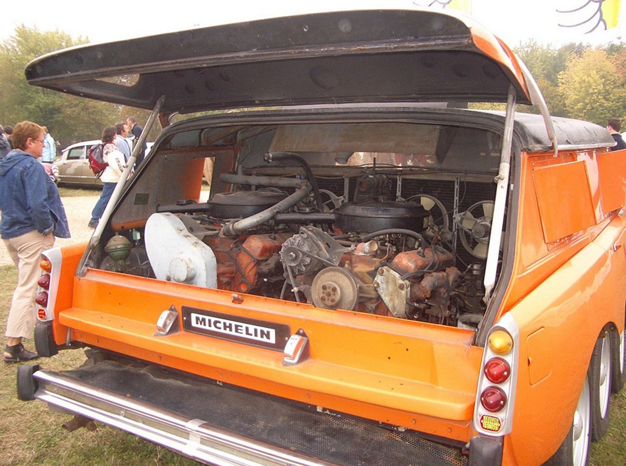 两台7.4升V8雪佛兰大缸体发动机被安装在尾部,一台负责驱动车辆,另一台负责带动安装在车身内部中央的测试用样品轮胎。负责冷却的引擎进气口在车身的两侧,窗户由格子代替。由液压控制的样品轮胎可以朝不同方向下降和校直,这样一来评估过程变得极其直观。这台车的极速可以达到180千米/小时。由于油耗感人,米其林为其安装了两个90升的油箱。该车曾经被用在位于Clermont-Ferrand的Ladoux测试赛道上,尽管这车现在不再被用来评估轮胎,但米其林仍把它作为推广用车带到各类集会和展览上,而大多数时候它被停放在位于Clermont-Ferrand的米其林博物馆里。