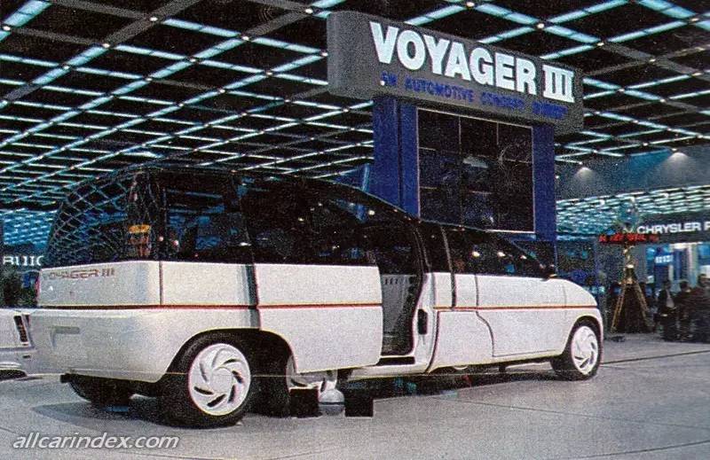 1990年底特律车展,当时通用的副执行董事Bob Lutz发布了这台概念车。Voyager III的设计理念非常独特:其前部是一台采用三缸甲醇发动机、可容纳三名乘员的紧凑型掀背车;而后部则连接着采用一具2.2升四缸发动机、可容纳八名乘员的自驱动模组。在这种奇葩的组合下,这部最多可以承载11名乘员、七汽缸、八轮的概念车诞生了。援引Bob Lutz的原话,“你现在可以看到人们开着浪费燃油并且占用空间的全尺寸MPV前往市中心地段。对于我们来说,能够把这类车三分之二的部分留在家里会是个很不错的主意。”但是,该车停留在了概念阶段。