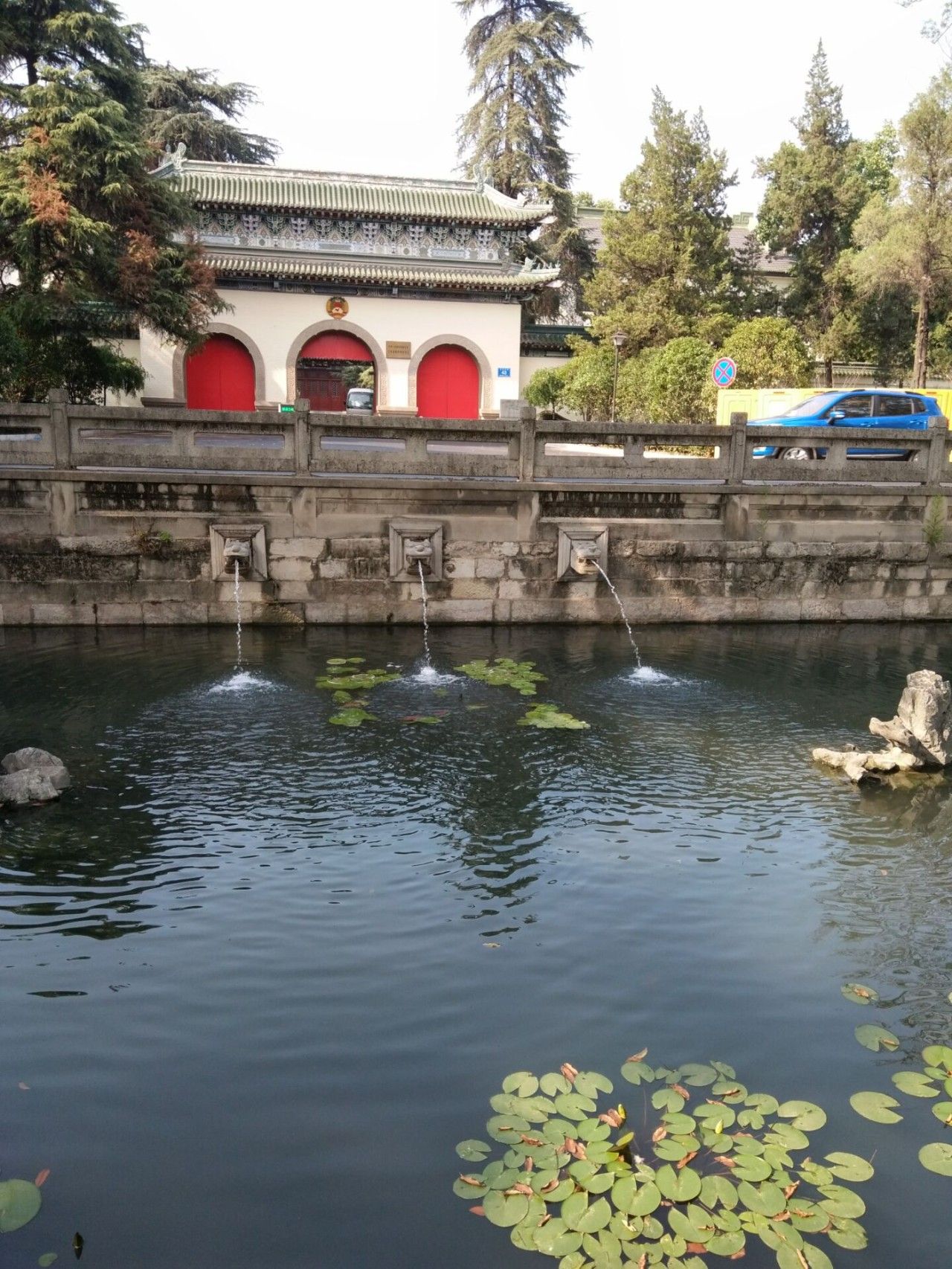 (市府大院门口的半月池变清澈了)