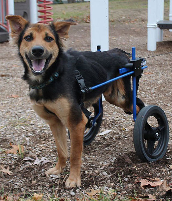 姑娘给它设立了一个捐款页面,在大家的帮助下,给它筹够了足够的捐款,装上了它的专用轮椅,现在,它又可以开心地跑来跑去了。