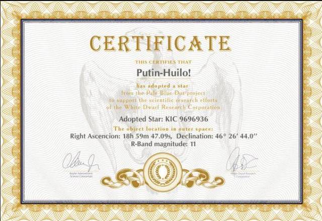 曾经有乌克兰的天文学家,就通过一个叫Pale Blue Dot的项目,只花了10美元,就命名了一颗星星,他给星星起的名字有点独特,嗯…..这颗星星名叫“普京混蛋”("Putin-Huilo!)