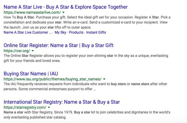 其实说到买星星和给星星命名这件事情,随便搜搜就能搜出不少网站,已经是一项非常成熟的业务了。。
