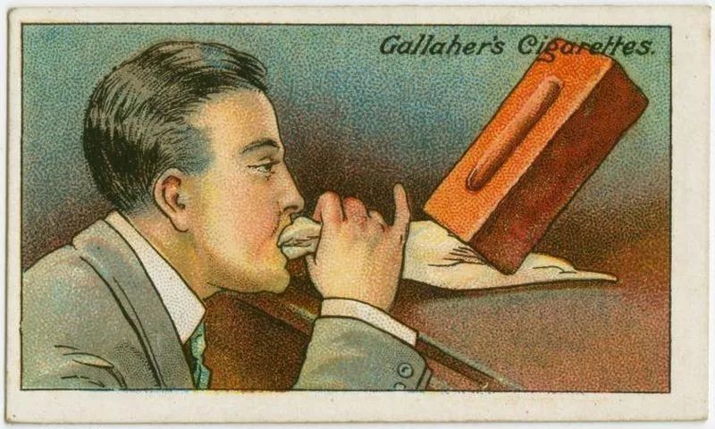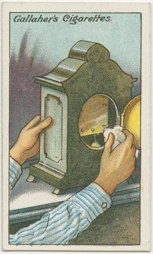 1910年前后,英国加莱赫(Gallaher)烟草公司在每包烟里都放了一点额外的东西:他们在硬卡片上印刷了一些“生活小窍门”,给每个小窍门配了华丽的全彩插图。