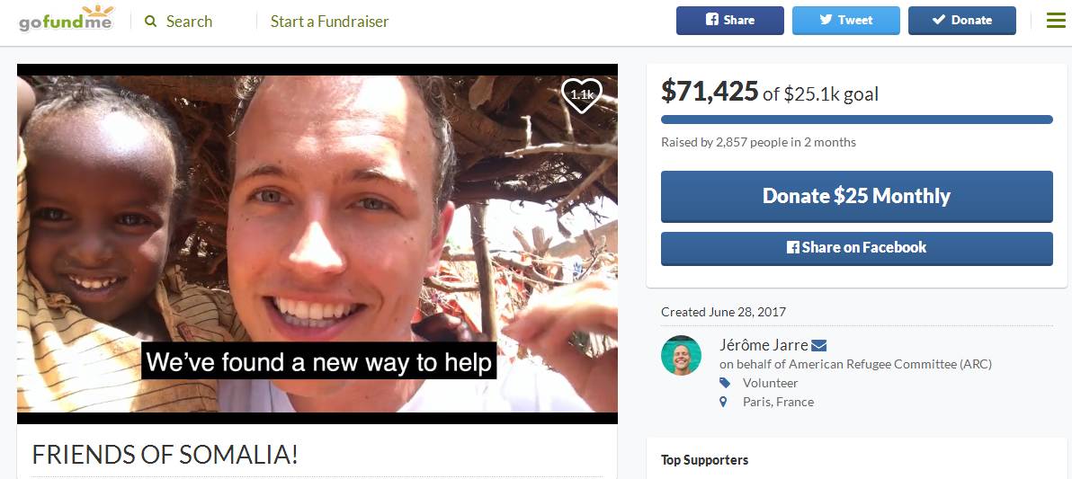 上周,在盖茨基金会主办的目标守卫者(GoalKeepers)大会的演讲上,杰罗姆·雅尔 (Jérôme Jarre),其中一位 YouTube 网红回顾了这次索马里故事。