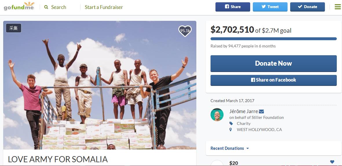 不久,另外两位网红凯西和苏里塔也加入了这个活动,他们在 YouTube 加起来就有超过 1300 万粉丝。两天后,演员斯蒂勒,美国前橄榄球运动员科林‧卡佩尼克等人也加入了……明星和网红就组成一支「索马里爱军」。