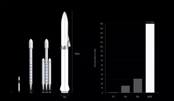 首先,马斯克缩小了用于星际运输系统的火箭大小,即缩小原计划ITS(Interplanetary Transport System)代号为超级大火箭(BFR for Big “F”字母Rocket)的尺寸。按照去年的计划,马斯克需要打造一台能容100人、直径12米的火箭,而且该火箭还有40 台引擎,发射到太空以后还需要补充燃料。修改后,ITS的直径为9米,高度为106米,拥有31台引擎。在马斯克的演讲PPT中可以发现,从体积上来看,升级后的ITS(BFR)是最大的,但论发射成本,BFR却是最低的。