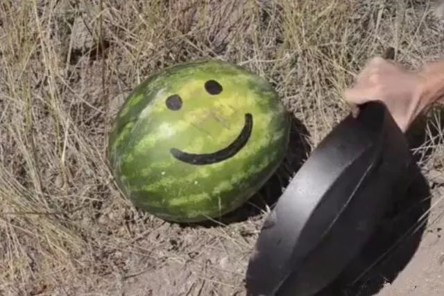 1911一发.45过后,只听铛的一声巨响,坚硬黝黑的锅底应声破了个大洞,本是悠然自得躲在平底锅之后的西瓜先生,虽然也是几乎吓破了胆,但是如此擦脸而过的小伤还并未撼动得了它,脸上依然带着那没心没肺微笑的西瓜先生一看就是见过世面,如此这般还能保持微笑气定神闲。