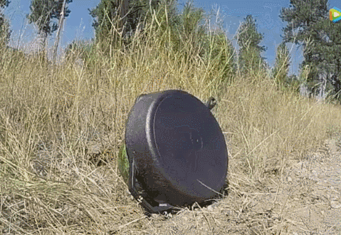 ▲第二枪把平底锅击碎,但是西瓜仍然没事