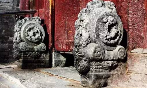 《说文》:"鼓,击鼓也。"中国古代击鼓升堂、击鼓定更等等已经形成了官制的行为特征,鼓成了官衙的符号。安放抱鼓石便成了权利地位的门户象征。同样,因为鼓是法事专用的乐器,把抱鼓石看作能够驱邪避灾的法力象征,在佛寺祠堂等庙宇前面摆放抱鼓石也是顺理成章的。另外,将门枕石上方做成圆形可与下部方形基座构成"天圆地方"的造型关系。门礅上通常雕刻一些中国传统的吉祥图案,因此是了解中国传统文化的石刻艺术品。