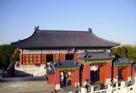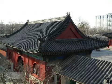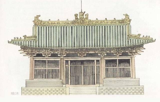 单檐庑殿顶多用于礼仪盛典及宗教建筑的偏殿或门堂等处,以示庄严肃穆,如北京天坛中的祈年门、皇乾殿及斋宫、华严寺大熊宝殿等。