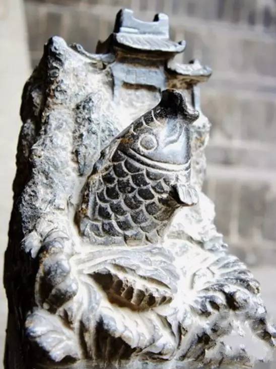 “鱼”和“余”、富裕的“裕”谐音,象征吉祥富裕、美好。雕“莲”和“鱼”的图案象征着“连年有余”。雕鲤鱼跃于两山之间的流水之中,表示鲤鱼跳龙门,象征着仕途高升。