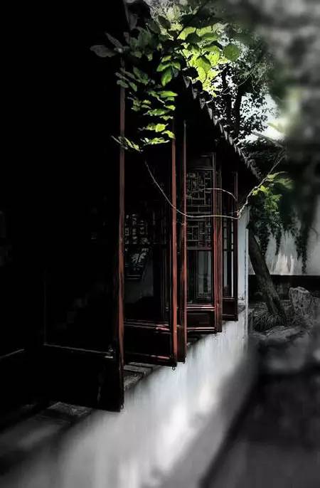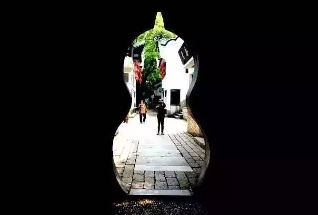 在园林中还有不少门是以植物符号作为设计灵感建造出来的门,植物形状的洞门,用灰青色方砖镶砌,与白色墙面、灰色瓦顶、建筑物上栗褐色门窗共同形成素净柔和、娴静淡雅的苏州园林色调风格。