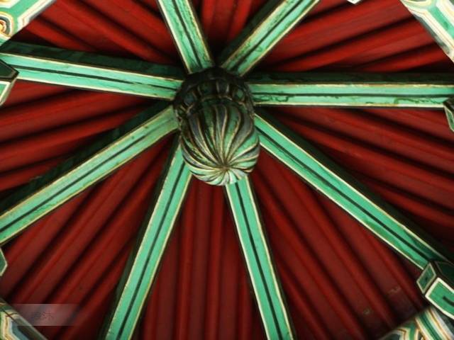 北京中山公园兰亭八柱亭,攒尖顶的内部