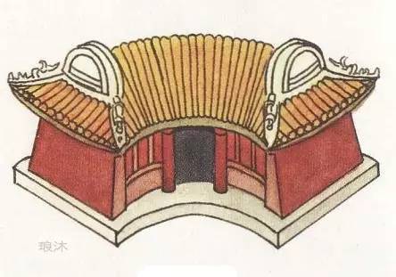 就是扇面形状的屋顶形式,其最大特点就是前后檐线呈弧形,弧线一般是前短后长,即建筑的后檐大于前檐。扇面顶的两端可以做成歇山、悬山、卷棚形式。一般用于形体较小的建筑中,会让建筑看起来更为小巧可爱。